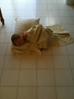 Anderson, on the other hand, seemed to be struggling a little without his big sis. When I went to pick them up from daycare, Anderson ran to me and instantly wanted me to pick him up and carry him out (a rarity for Anderson). When we got home he got jammies on, grabbed his blanket and pillow, and laid on the kitchen floor until dinner. All he wanted was a piece of Gigi toast (peanut butter toast) and water. I KNEW something was up! Today I talked to his teacher about it and she said at one point during the day yesterday, Anderson was clinging to the fence at recess, yelling "Lilly? Lilly?" It's about the darn saddest image I've ever had. I sure hope today goes more smoothly for our little guy!